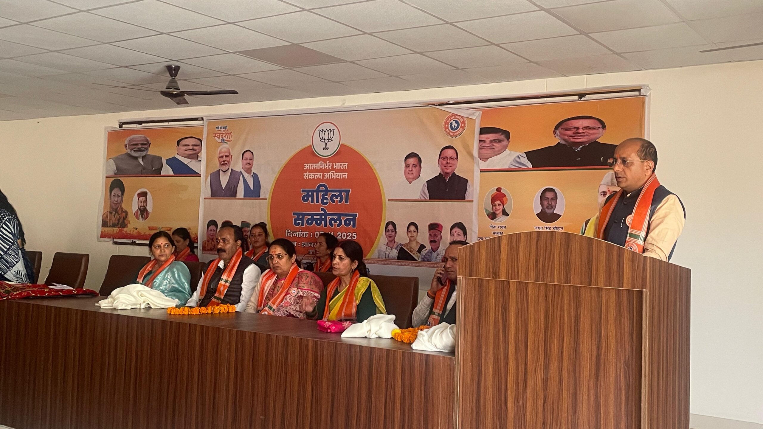 उत्तरकाशी: जिला मुख्यालय में भाजपा महिला मोर्चा की ओर से आत्मनिर्भर भारत संकल्प सम्मेलन का आयोजन पार्टी कार्यालय ज्ञानसू में किया गया। कार्यक्रम में बतौर मुख्य अतिथि बीजेपी प्रदेश मीडिया प्रभारी मनवीर सिंह चौहान मौजूद रहे ।