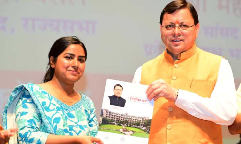 मुख्यमंत्री पुष्कर सिंह धामी ने मंगलवार को दून मेडिकल कॉलेज, पटेल नगर में 1456 अभ्यर्थियों को नियुक्ति पत्र प्रदान किये। इसमें लोक सेवा आयोग के माध्यम से चयनित 109 समीक्षा अधिकारी एवं सहायक समीक्षा अधिकारी और उत्तराखण्ड अधीनस्थ सेवा चयन आयोग के माध्यम से चयनित 1347 सहायक अध्यापक (एल.टी.) शामिल हैं।
