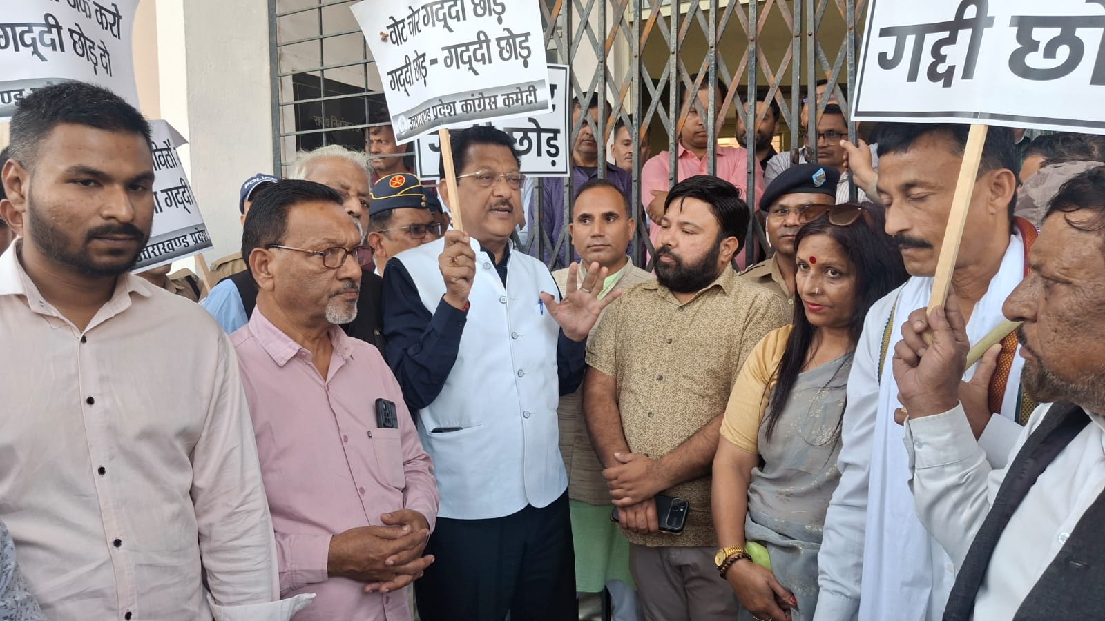 वोट चोर गद्दी छोड़ के नारों से गूंजा राज्य निर्वाचन आयुक्त कार्यालय